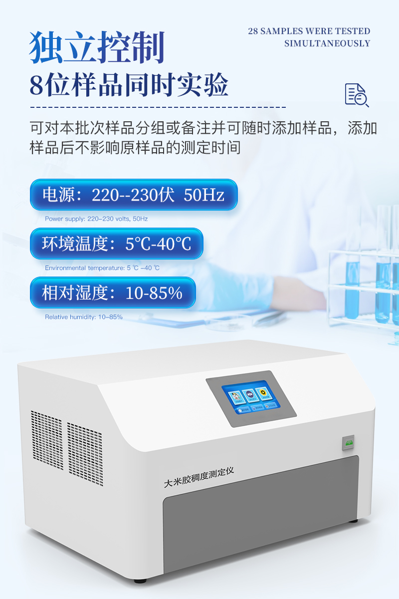 1、用途:适用于粮油检测大米胶稠度的测量2、工作条件:2.1电源:220--230伏, 50Hz;环境温度:5℃-40℃;相对湿度:10-85%3、技术指标要求★全样品位:8位,★样品位可独立控制:每个样品位独立控制,*多实现8位样品同时实验。★恒温控制功能:**的升温和降温模块,自动控制实验操作在