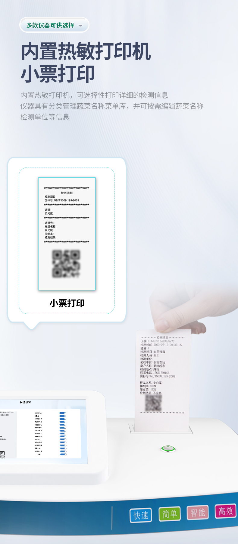 该仪器为三体仪器新研发一款农残快速检测仪,采用国标速测卡,使检测速度更快,操作更加简便。检测标准:依据国家标准方法(GB/T5009.199-2003)以及世界卫生组织WHO、世界粮农组织FAO残留农药检测标准、世界环境保护局EPA参照摄入量等要求来设计。