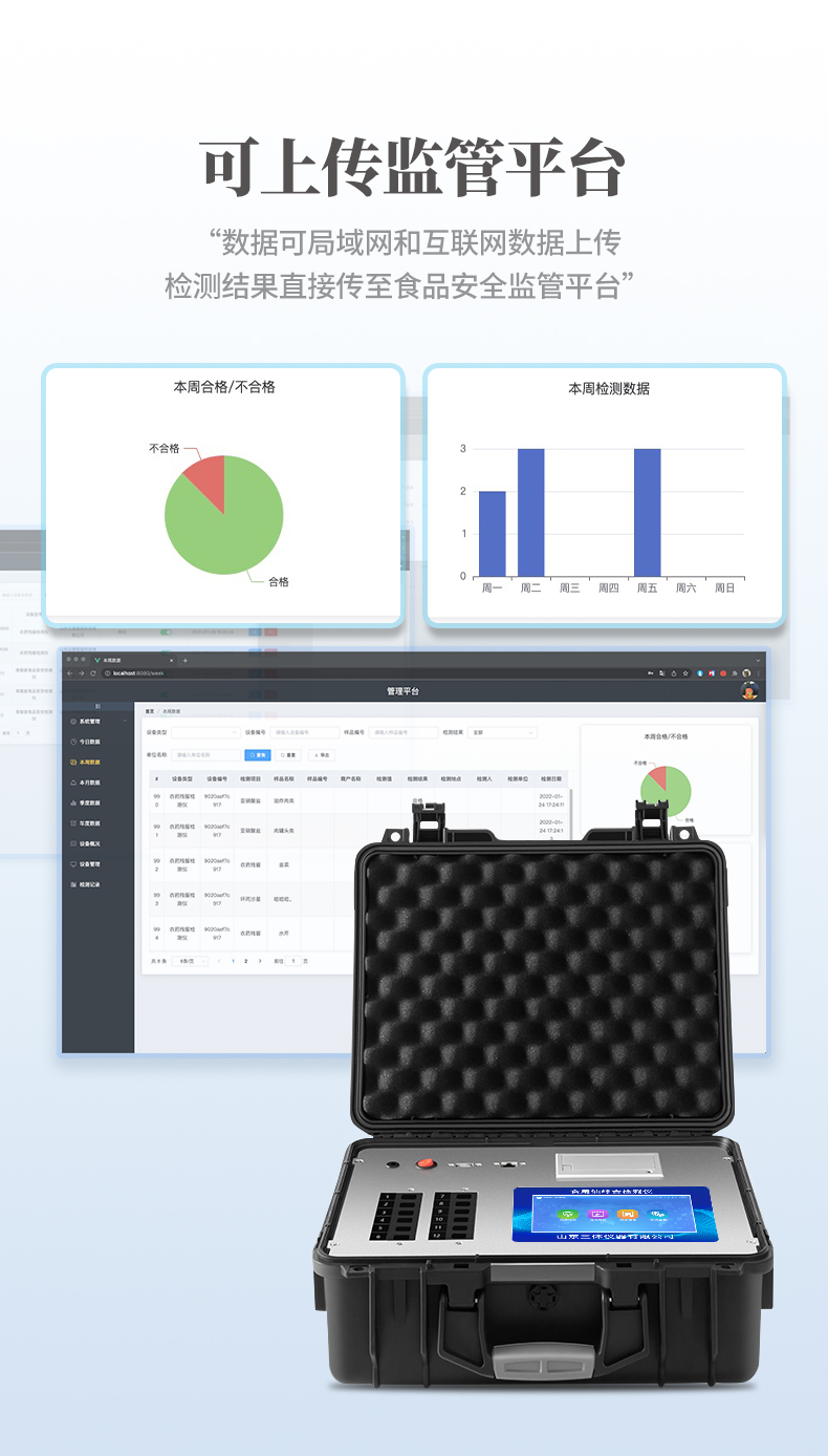 4、一体化便携式快检设备,满足现场及流动检测使用需求。