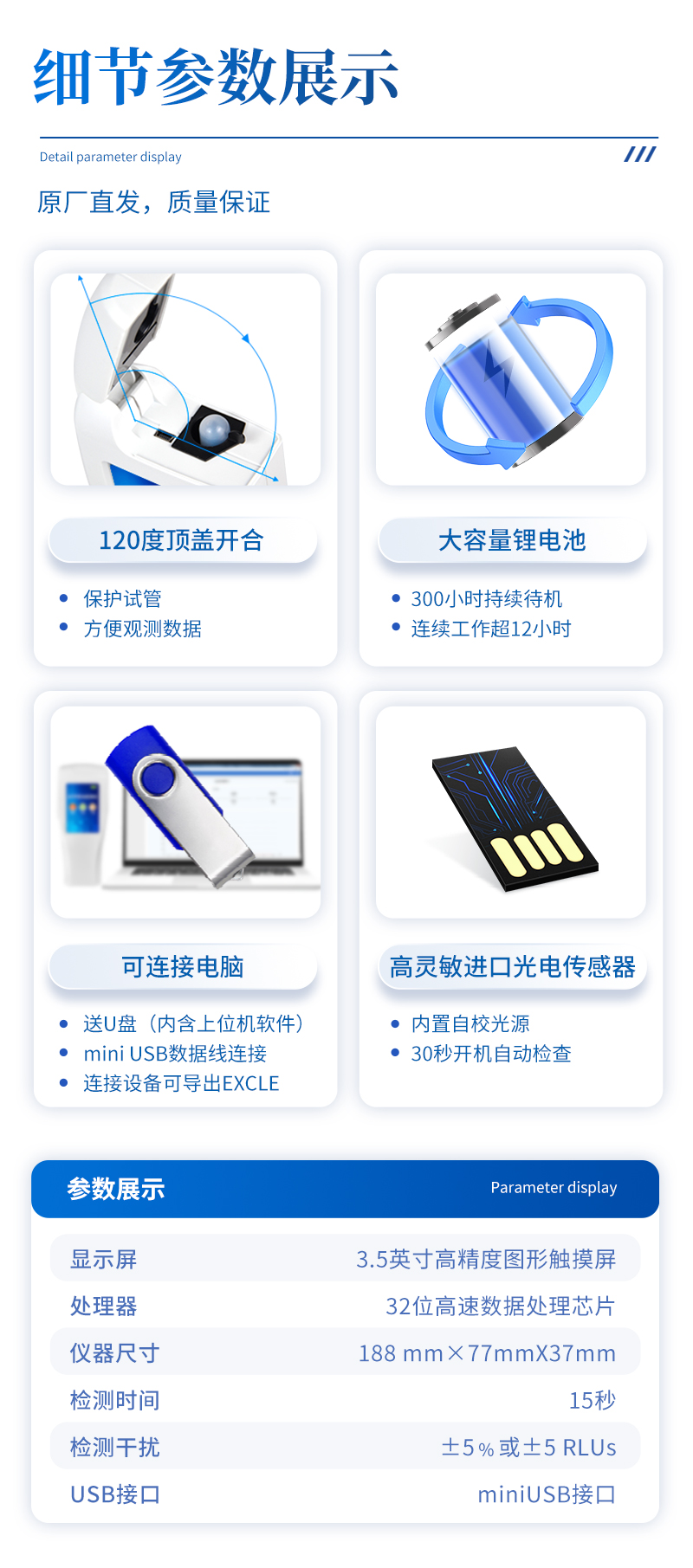 随机配置:ATP荧光检测仪(手持)主机、铝合金手提箱、驱动U盘、PC数据线、数据分析软件、中文操作手册
